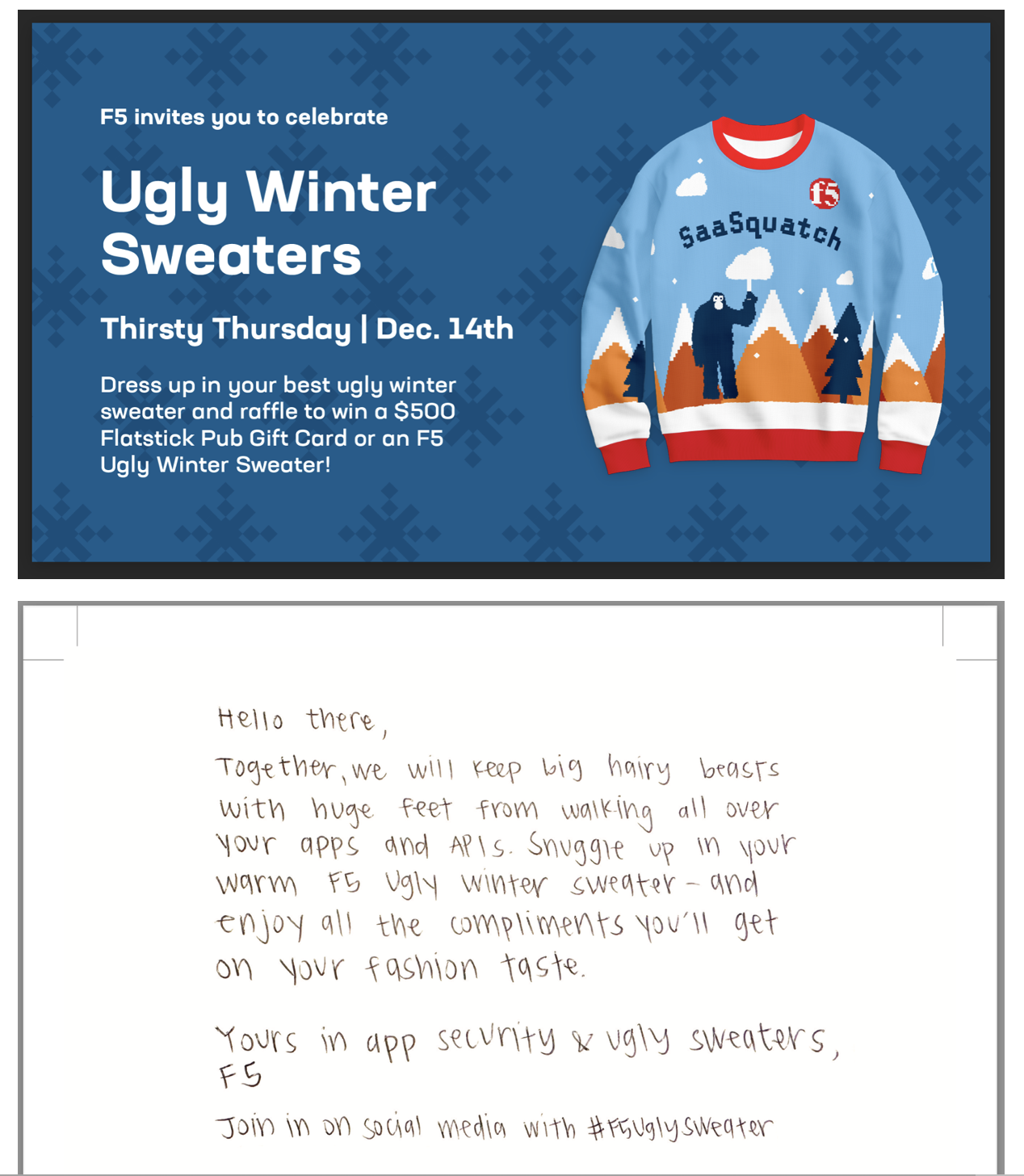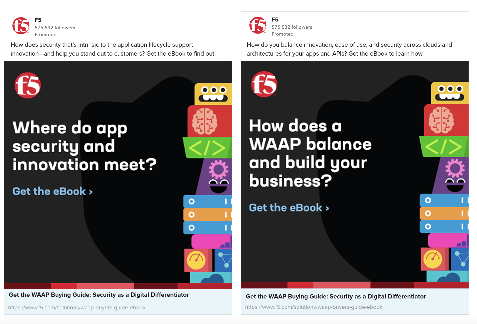 LinkedIn Lead and Sponsored ads from F5 Brand Studio campaigns…plus the Ugly Winter Sweater promotion. :-)